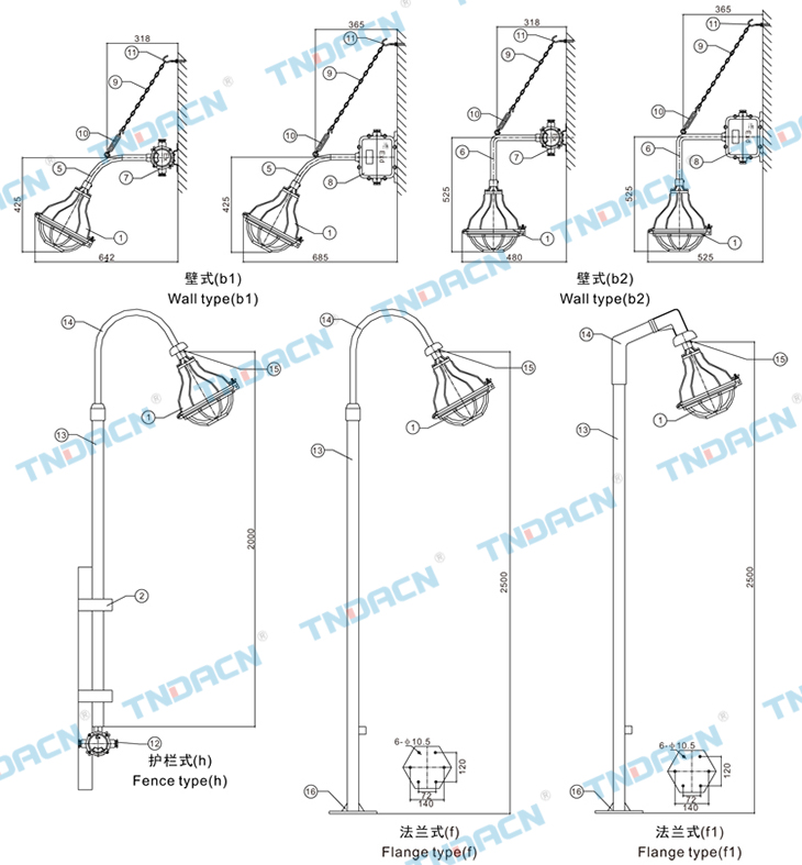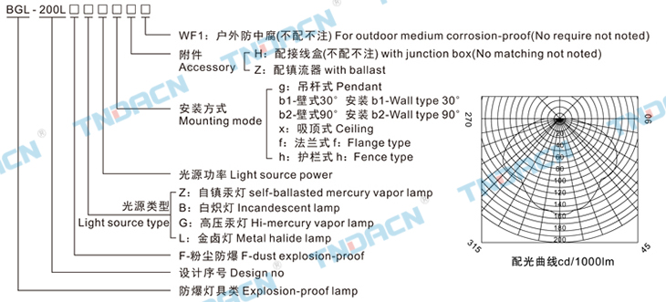 5.可配裝白熾燈、汞燈、金鹵燈;