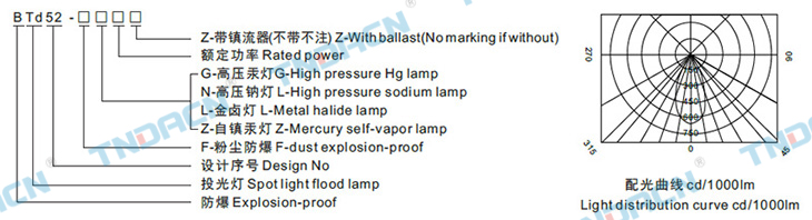 1.殼體采用高強(qiáng)度合金鋁一次性壓鑄成型,表面經(jīng)高速拋丸清理后高壓靜電噴塑。外殼結(jié)構(gòu)緊湊合理、材質(zhì)密度高強(qiáng)度好、 防爆性能優(yōu)良,表面塑粉附著力強(qiáng)具有良好的防腐能力,表面光潔,美觀大方; 2.高硼硅玻璃,透光性好,不銹鋼外露緊固件; 3.燈體可水平安裝或壁式安裝,45°~90°可調(diào); 4.專利結(jié)構(gòu),采用側(cè)面開蓋,快速更換燈泡; 5.反光罩經(jīng)過專業(yè)二次配光設(shè)計,并得到實際應(yīng)用驗證,使用桔紋漫反射可使光線柔和,照射角幅度大; 6.電纜布線。 1.Shell made of high strength aluminum alloy casting off the surface after blast cleaning by high voltage electrostatic spray. Shell compact structure, high density material strength, Explosion-proof performance, the surface of plastic powder adhesion ability with good anti-corrosion, the surface smooth, elegant appearance; 2.Lamp housing is made of high borsilicate glass with great transmittance.Outer fasteners are made of stainless steel. 3.It can have horizontally installation or walled installation. Adjusting in the range of45°~90°; 4.It has patent structure .We should open the cover in fland to replace the bulb immediately. 5.The reflect should get special software design of distribution for two times ,and it can have the comfirmation of actual test. Using orange-peel diffuse plate to make the light soft and made the irradiation range large. 6. Wiring with cables.