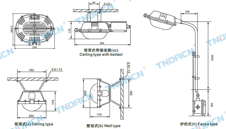 1.殼體采用高強度合金鋁一次性壓鑄成型,表面經(jīng)高速拋丸清理后高壓靜電噴塑。外殼結(jié)構(gòu)緊湊合理、材質(zhì)密度高強度好、 防爆性能優(yōu)良,表面塑粉附著力強具有良好的防腐能力,表面光潔,美觀大方; 2.高硼硅玻璃,透光性好,不銹鋼外露緊固件; 3.反光罩經(jīng)過專業(yè)二次配光設(shè)計,并得到實際應(yīng)用驗證,使用桔紋漫反射可使光線柔和,照射角幅度大; 4.電纜布線。 1.Shell made of high strength aluminum alloy casting off the surface after blast cleaning by high voltage electrostatic spray. Shell compact structure, high density material strength, Explosion-proof performance, the surface of plastic powder adhesion ability with good anti-corrosion, the surface smooth, elegant appearance; 2.Lamp housing is made of high borsilicate glass with great transmittance.Outer fasteners are made of stainless steel. 3.The reflect should get special software design of distribution for two times ,and it can have the comfirmation of actual test. Using orange-peel diffuse plate to make the light soft and made the irradiation range large. 4. Wiring with cables.