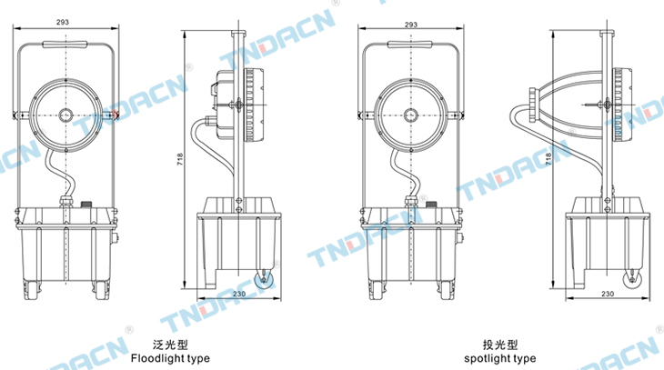 6.The illumination angle can be ajusted in 120°, there are movable wheels on the3 bottom of shell. The operation is simple.