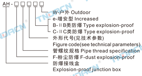 隔爆型接線盒代號,外形及名稱一覽表 Flame-proof junction box code, outline and descriptions as the following table.