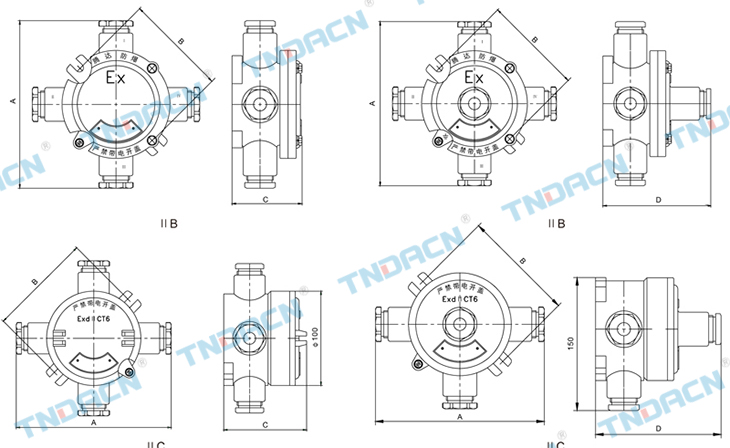 ⅡC類,接線盒外形尺寸 Dimension of ⅡB group junction box