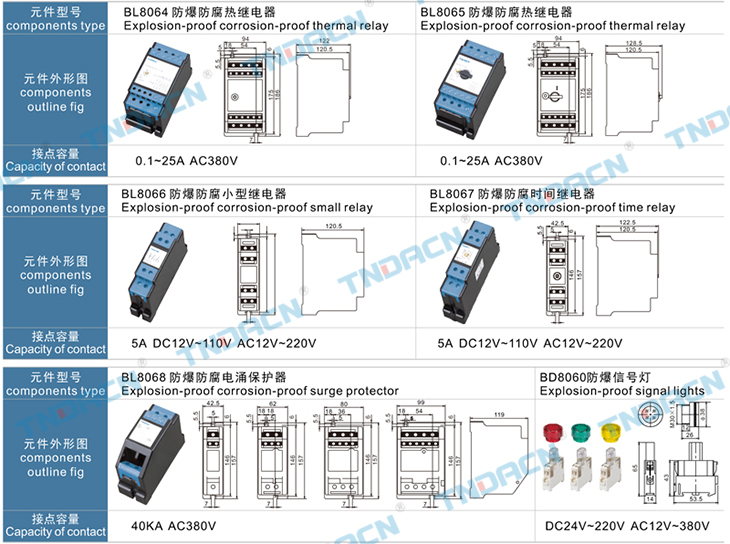 內(nèi)裝元件主要技術(shù)參數(shù) Technical parameters of built -in components