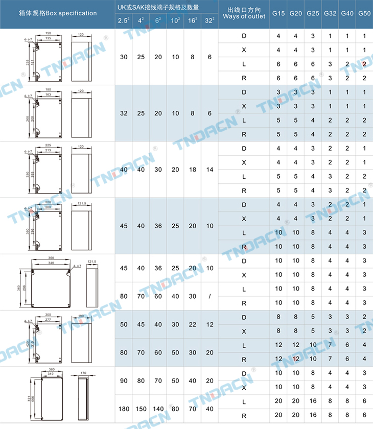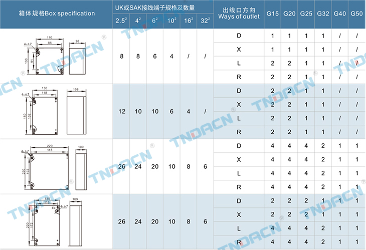 進出線口螺紋規(guī)格 Inlet and outlet thread sizes |