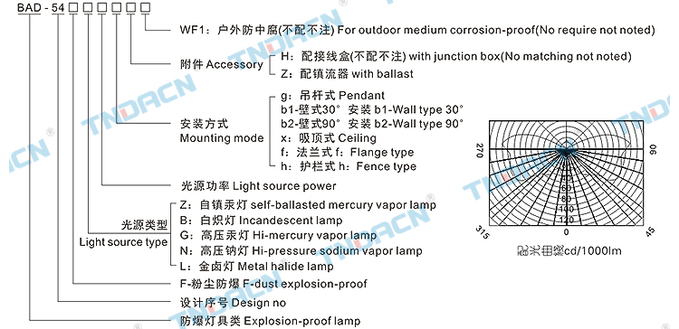 BAD54-F系列粉塵防爆燈(DIP) BAD54-F type dust explosion-proof lamp(DIP) |