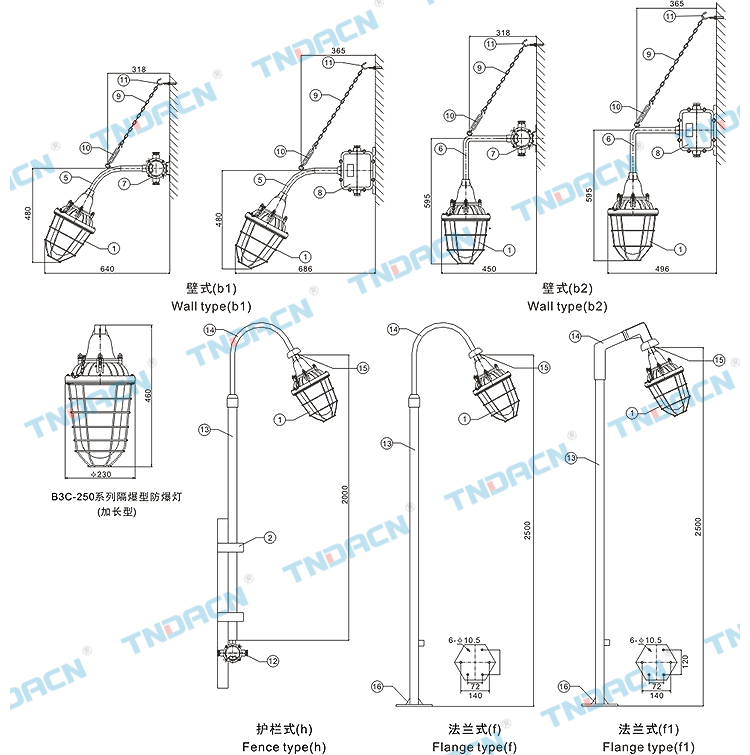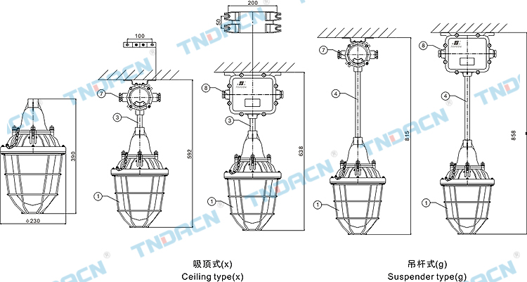 1.20區(qū)、21區(qū)、22區(qū)危險場所; 2.可燃性粉塵環(huán)境; 3.戶內(nèi)、戶外(IP54、IP65*); 4.溫度組別:T1~T4/T5/T6; 5.可配裝白熾燈、汞燈、高壓鈉燈、金鹵燈; 6.應(yīng)用于石油、化工、航天、軍工等場所。 |