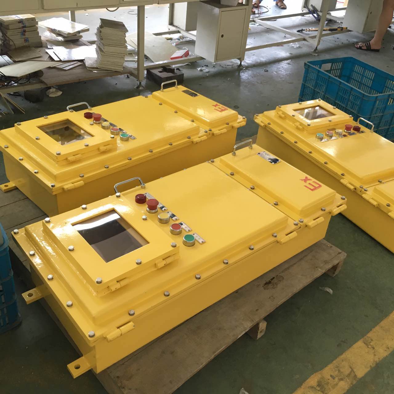 碳鋼焊接防爆箱采用4MM鋼板焊接而成。人工焊接噴塑而成。是防爆箱中實用的一種材質(zhì),也是采用非常多的箱體。如圖: