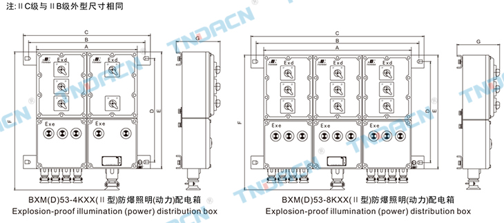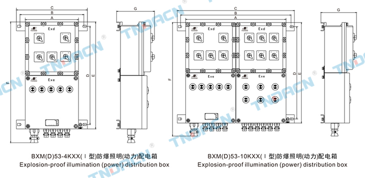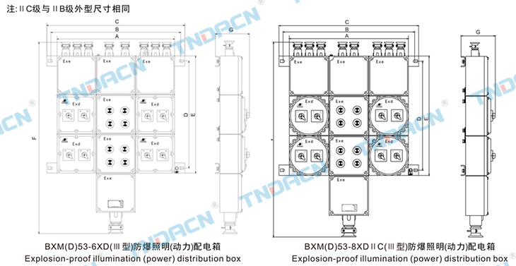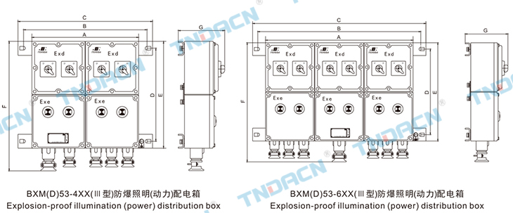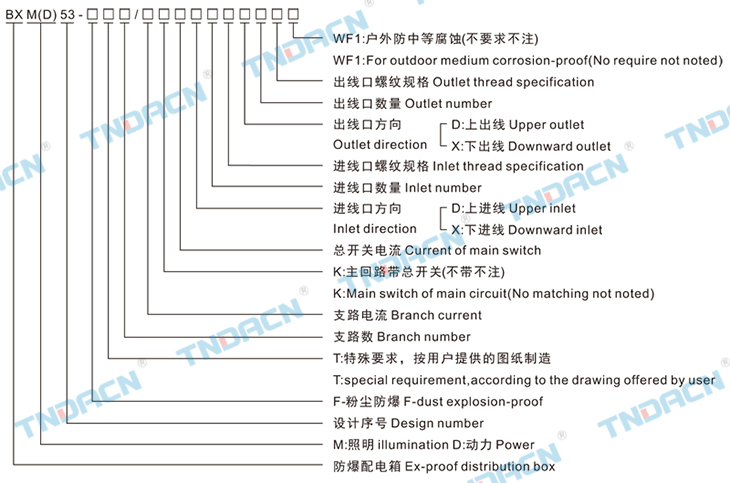 型號含義 Model implication BXM(D)53系列防爆照明(動力)配電箱(IIB、IIC)
