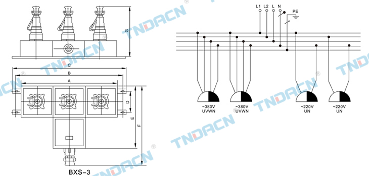 外形、安裝尺寸及電氣原理圖 Outine and installation dimensions & electric diagram