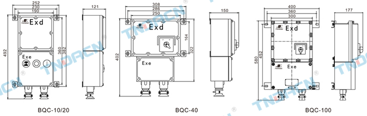 1.殼體采用高強度合金鋁一次性壓鑄成型,表面經高速拋丸清理后高壓靜電噴塑。外殼結構緊湊合理、材質密度高強度好、 防爆性能優(yōu)良,表面塑粉附著力強具有良好的防腐能力,表面光潔,美觀大方; 2.內裝斷路器、接觸器、熱繼電器等,可控制電機的直接起動、停止,并對過載、短路和失壓進行保護; 3.鋼管或電纜布線。 1.Shell made of high strength aluminum alloy casting off the surface after blast cleaning by high voltage electrostatic spray.Shell compact structure, high density material strength, Explosion-proof performance, the surface of plastic powderadhesion ability with good anti-corrosion, the surface smooth, elegant appearance; 2.Built-in circuit breaker, contactor, thermal relay, to start or stop motor, with overload, short circuit and voltage decompression protection functions; 3.Wiring with steel tube or cable.