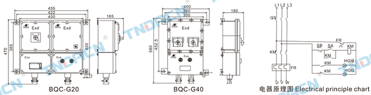 1.殼體采用高強度鋁合金一次性壓鑄成型,表面經(jīng)高速拋丸清理后高壓靜電噴塑,外殼結(jié)構(gòu)緊湊合理,強度好,防爆性能優(yōu) 良,表面塑粉附著力強,具有良好的防腐性能,外表整潔,美觀大方; 2.內(nèi)裝斷路器、接觸器、熱繼電器等,可控制電機的直接起動、停止,并對過載、短路和失壓進行保護; 3.鋼管或電纜布線。 1.Enclosure is cast with high intensity aluminum alloy, surface is sprayed with plastic by high voltage static electicity, after the highly impeller cleaning. The structure of enclosure is reasonable, high-intensive and perfect-explosive and the surfaceplastic of good adhesive force is excellent in explosion-proof and appearance; 2.Built-in circuit breaker, contactor, thermal relay, to start or stop motor, with overload, short circuit and voltage decompressionprotection functions; 3.Wiring with steel tube or cable.