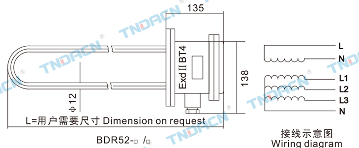 1.殼體采用高強度合金鋁一次性壓鑄成型,表面經(jīng)高速拋丸清理后高壓靜電噴塑。外殼結(jié)構(gòu)緊湊合理、材質(zhì)密度高強度好、 防爆性能優(yōu)良,表面塑粉附著力強具有良好的防腐能力,表面光潔,美觀大方; 2.電加熱管外殼為不銹鋼,內(nèi)部采用耐高溫緣膠壓力注射定型電熱體,外套采用鋁合金; 3.法蘭式安裝,特殊要求可定制。 1.Shell made of high strength aluminum alloy casting off the surface after blast cleaning by high voltage electrostatic spray.Shell compact structure, high density material strength, Explosion-proof performance, the surface of plastic powderadhesion ability with good anti-corrosion, the surface smooth, elegant appearance; 2.The cover of electrical heater tube is made of stainless steel and the interioradopt high temperature resistance insulationglue, the pressure injectedelectro thermal part, the case is made of aluminium alloy; 3.Flange mounting. It can be designed on request.