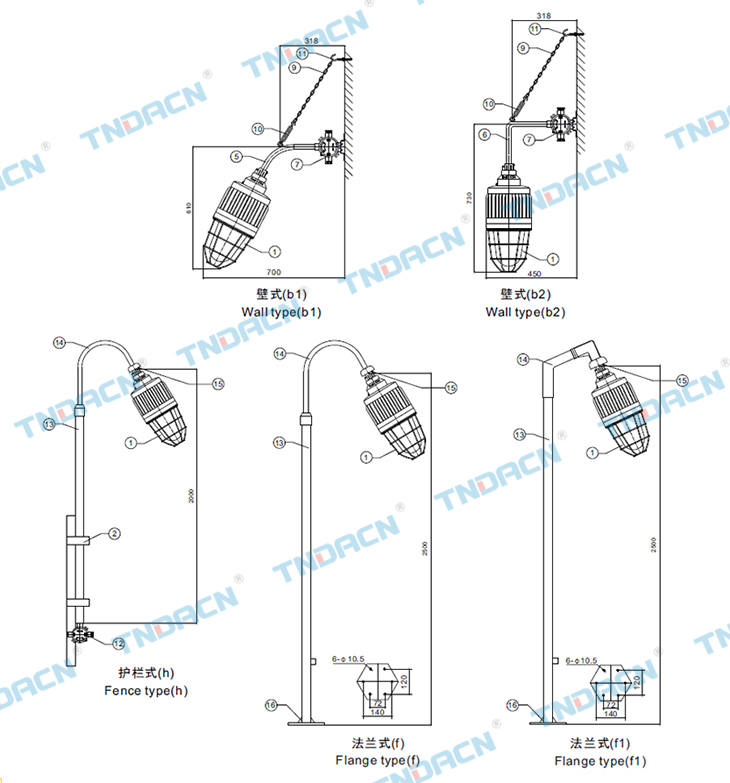 5.可配裝白熾燈、汞燈、高壓鈉燈、金鹵燈;