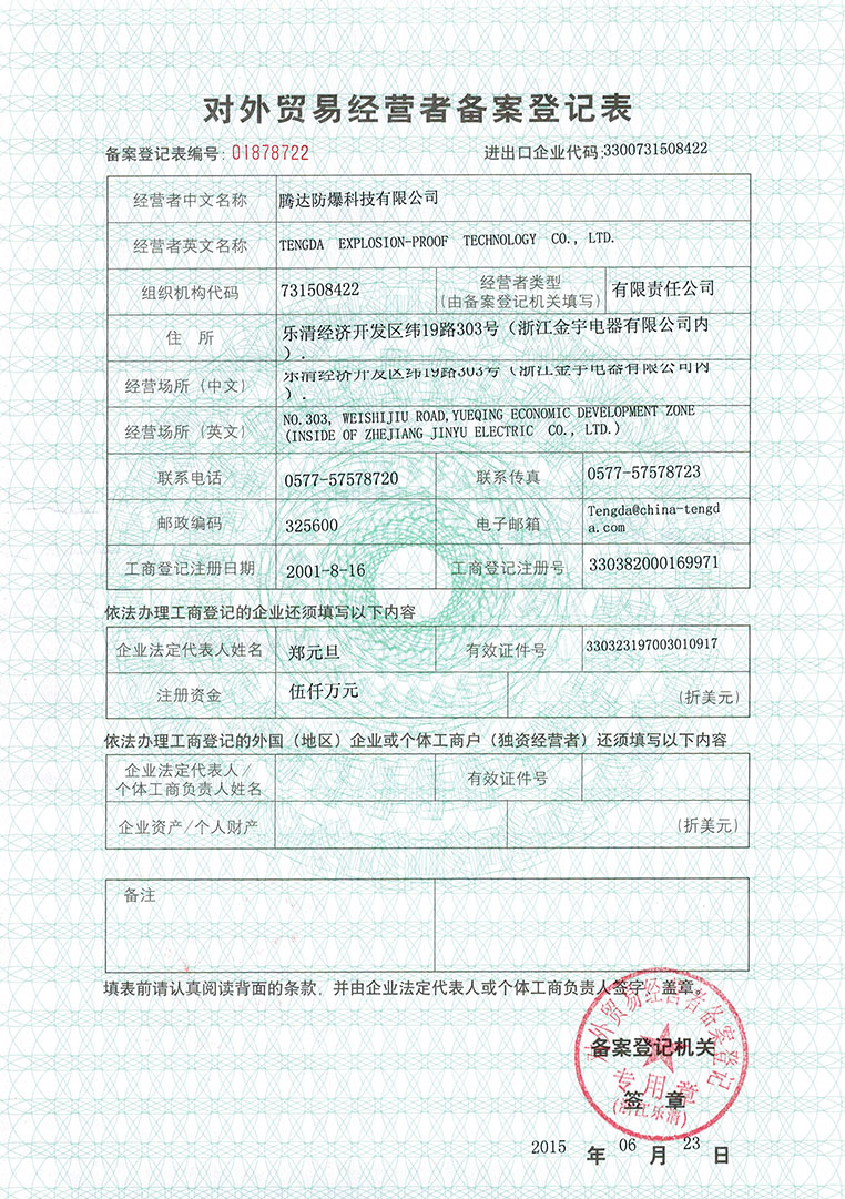 對(duì)外貿(mào)易經(jīng)營(yíng)者備案登記表