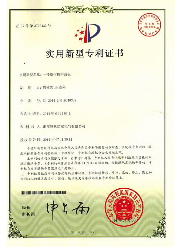 實(shí)用新型專利(一種操作機(jī)構(gòu)面板)