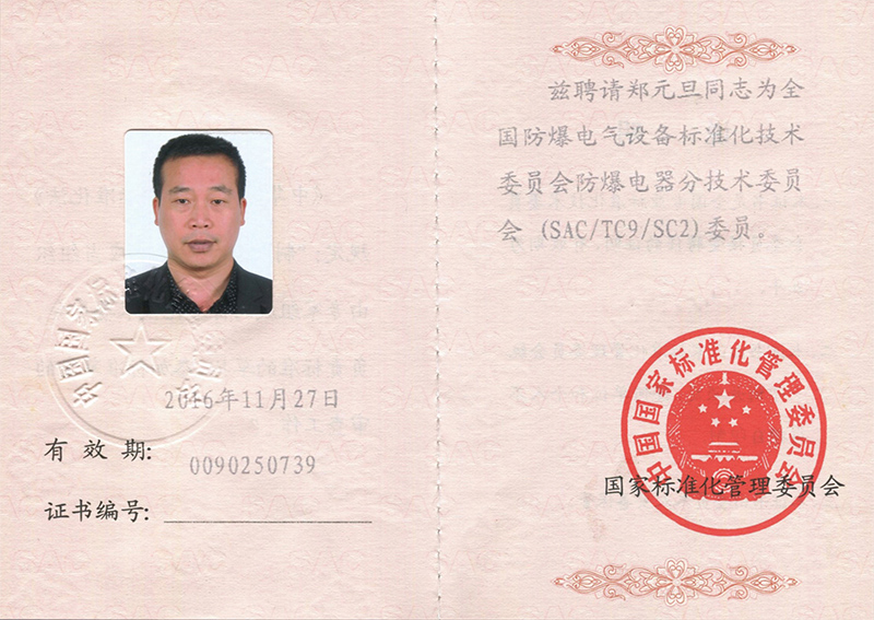 全國防爆專業(yè)標(biāo)準(zhǔn)化證書