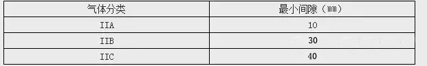 1.14 安裝設(shè)備時,應(yīng)注意防止隔爆接合面與固體障礙物(如鋼架、墻、護套、安裝板、管道或其他電氣設(shè)備)之間的距離不小于下表規(guī)定的數(shù)值,試驗證明隔離距離可以更小的除外。